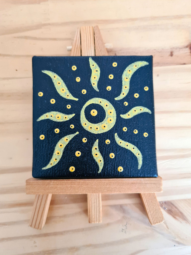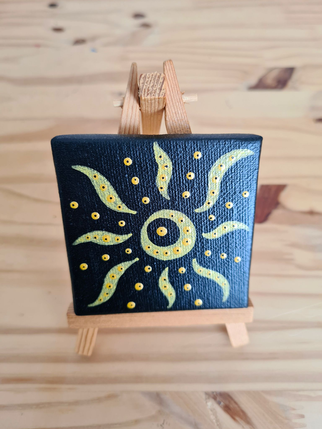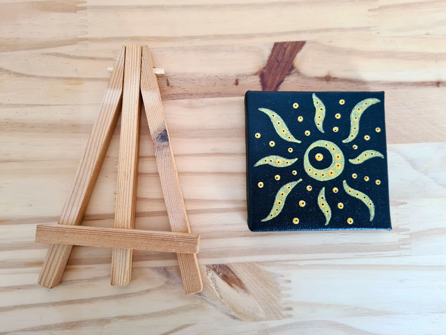 Mini toile et son chevalet, peinte et vernis à la main avec amour et passion.