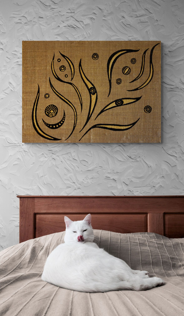 Dorure sur rabane et peinture 3D - 40 x 55 cm